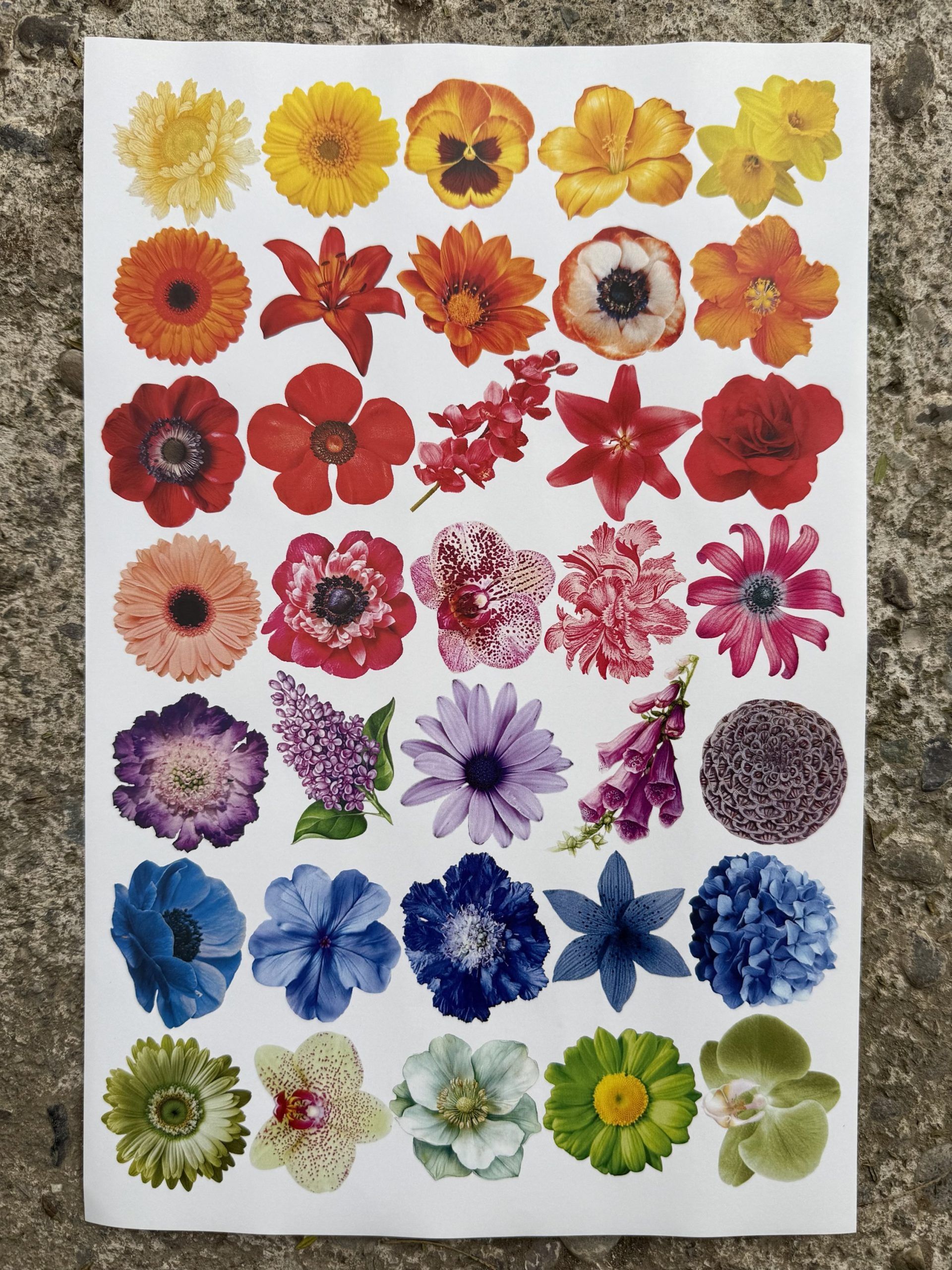 Lámina Sticker Flores Colores Recortable